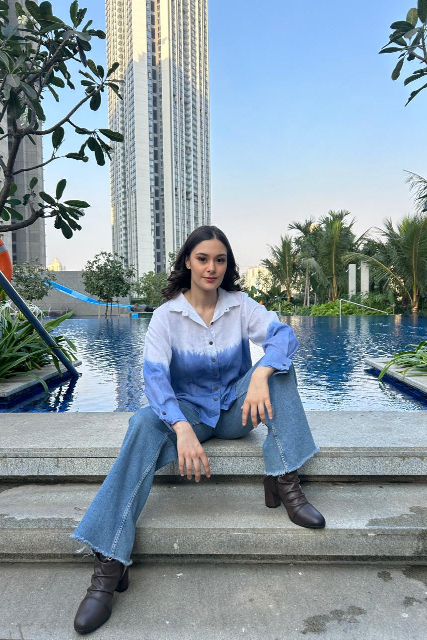 Our Blue Ombre Linen Co-ord Set combines pure linen comfort with a striking blue-to-white gradient. The breathable fabric and relaxed fit make it ideal for warm weather, while the ombre effect adds modern sophistication.
