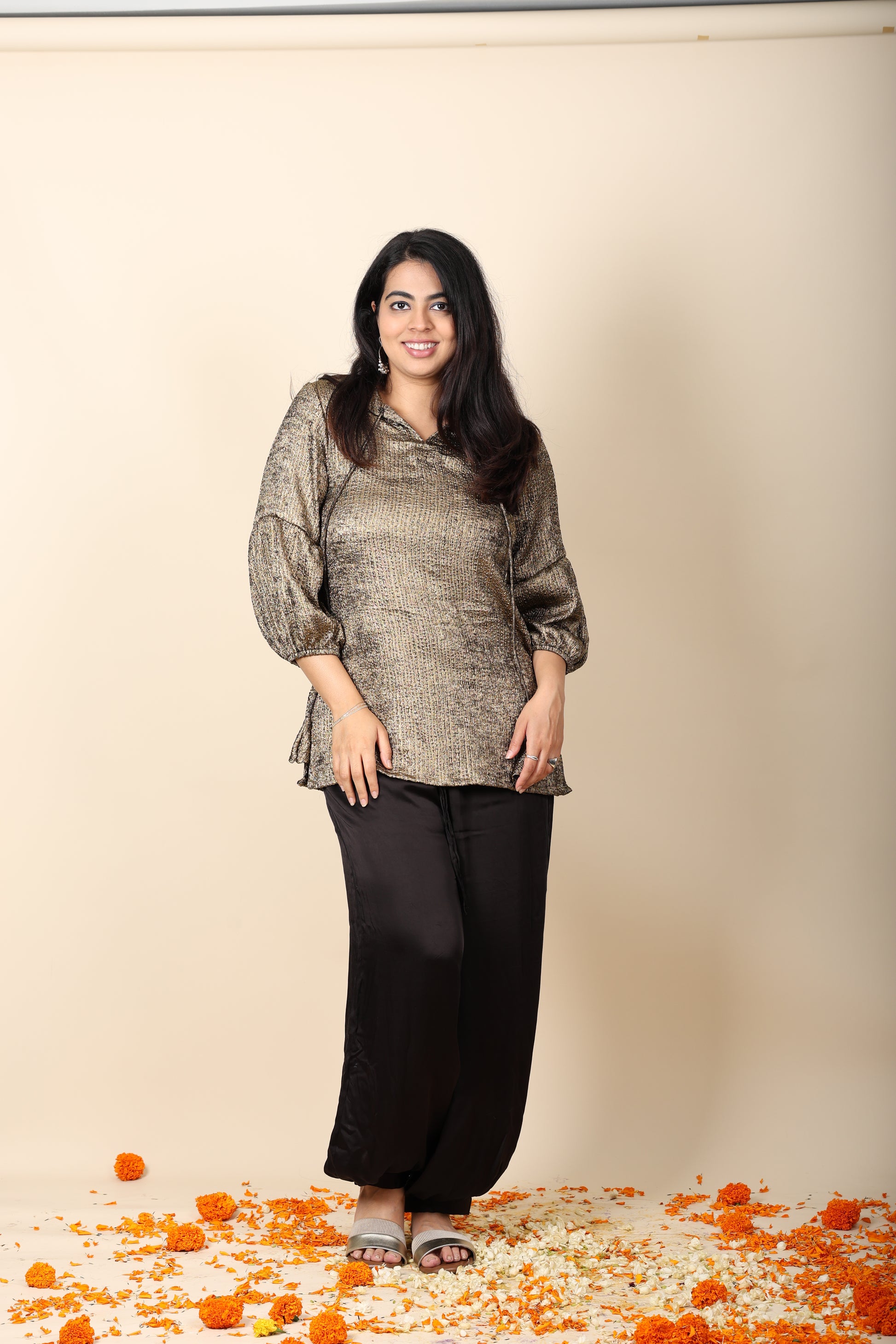 Our Gold Black Co-ord Set is designed for women who want to stand out. It combines luxurious design with modern style for a versatile ethnic look.