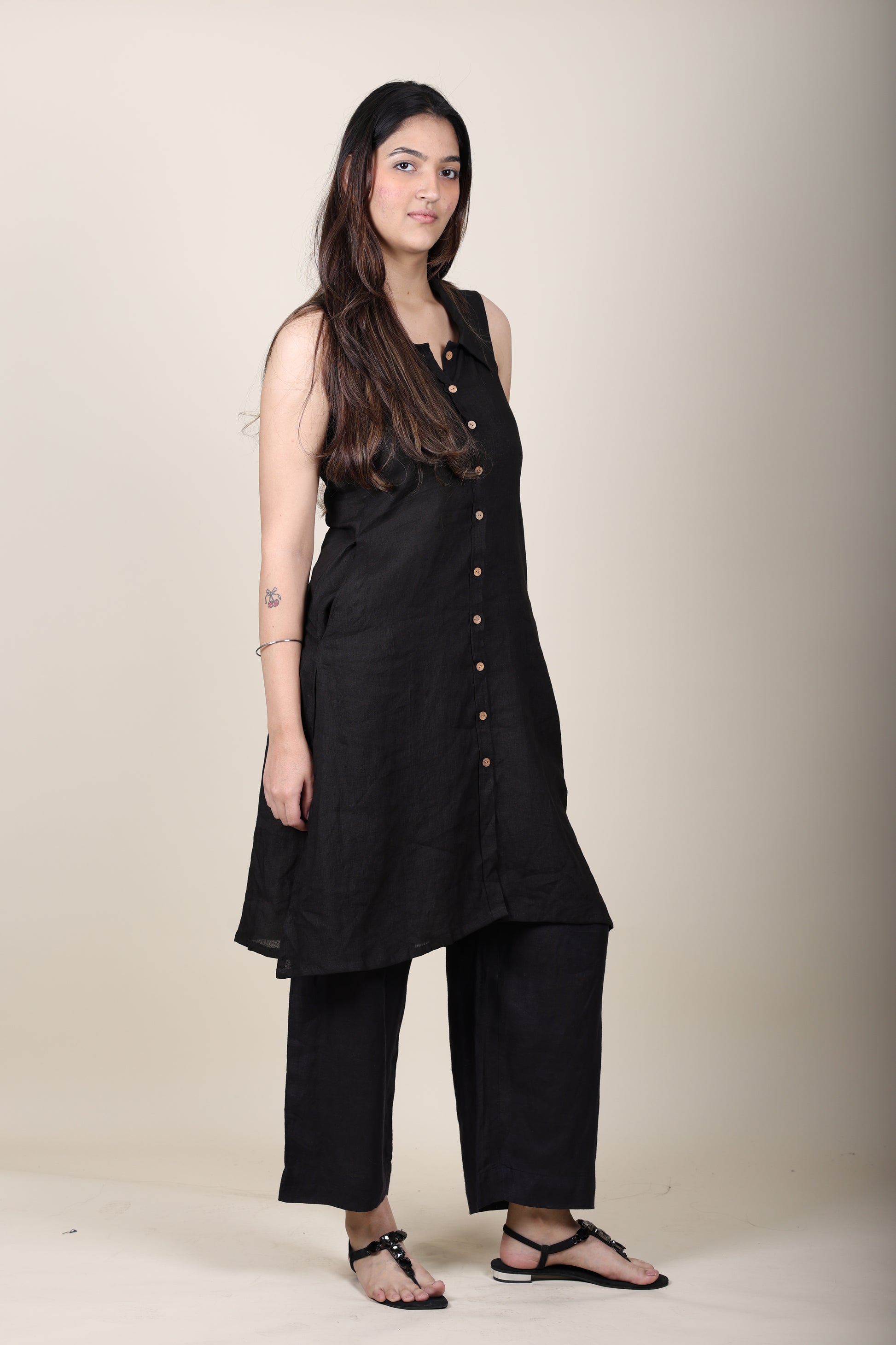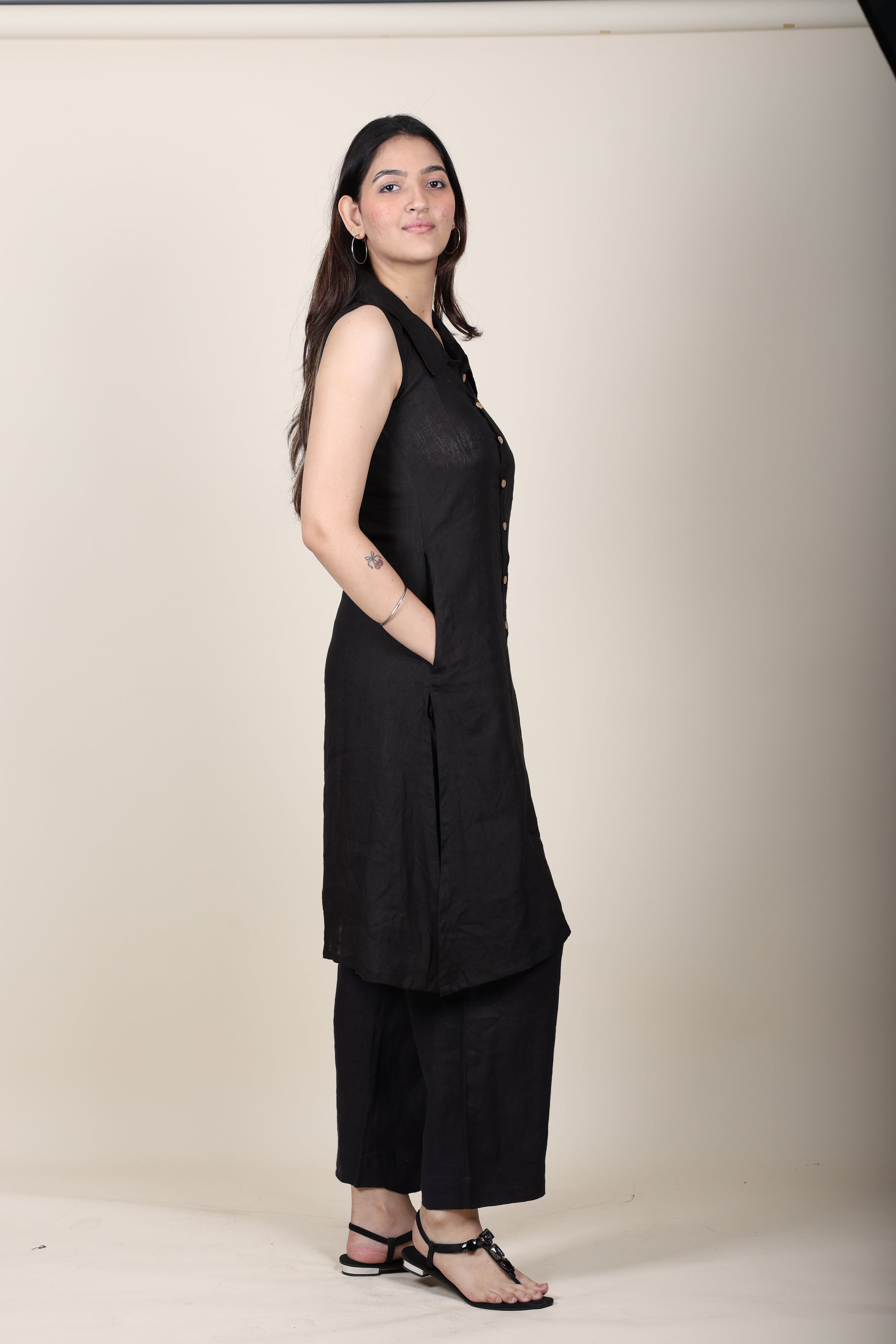 Made from 100% linen, the fabric is soft, breathable, and naturally elegant. The earthy charm of linen paired with the sophistication of black makes this coord set versatile enough to style across occasions.