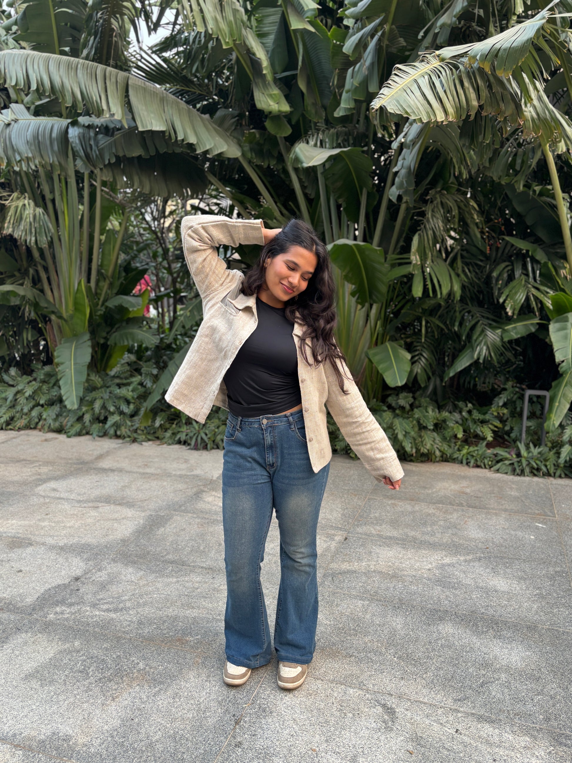 Made from 100% pure hemp, the jacket offers a naturally breathable, durable, and eco-friendly wear. Hemp’s lightweight yet structured weave makes it ideal for layering across seasons. The organza inset adds a dreamy, ethereal touch that enhances the feminine silhouette.